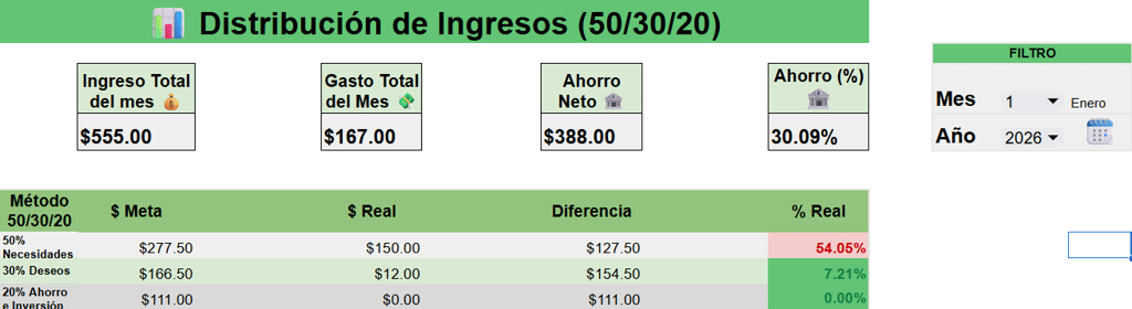 Plantilla gratuita de presupuesto personal en Google Sheets basada en el método 50/30/20. Diseñada para ayudarte a gastar mejor, ahorrar más y tomar decisiones financieras conscientes.