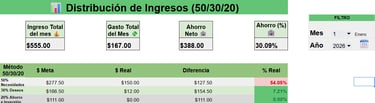 Plantilla gratuita de presupuesto personal en Google Sheets basada en el método 50/30/20.